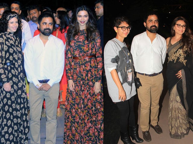 Rani Mukerji, who almost exclusively wears Sabysachi, wore spectacles with her sari - a look seen on the designer's catwalk some seasons ago. Actress Kalki Koechlin, who was Deepika's neighbor in the front row, accessorized her outfit with a matching head-band. Yaariyan director Divya Khosla wore a maxidress.