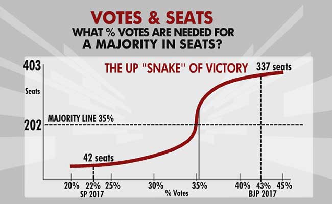 The Uttar Pradesh "snake" of victory shows that a party or coalition will need a substantial 35 per cent of the total votes to get a majority in the state, where assembly elections are being held in seven phases. Majority in the 403-member UP assembly is 202 seats.