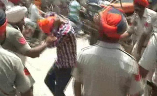 At least a dozen policemen including a Deputy Superintendent of Police were injured on Sunday as they tried to stop a procession by Sikh hardliners in Ajnala town of Amritsar district.