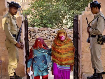 Women arrive to cast their votes during the Haryana state elections in Bandhwadi. (Press Trust of India)