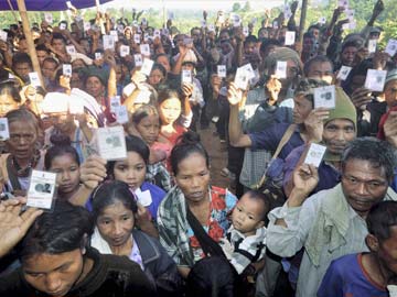 Voters in Mizoram wave their identity cards