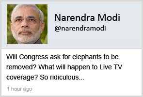 In a comment on micro-blogging site Twitter, Modi took a jibe at the Election Commission's orders for the state and asked if elephants in the Jan 26 parade are also a violation of model code of conduct.