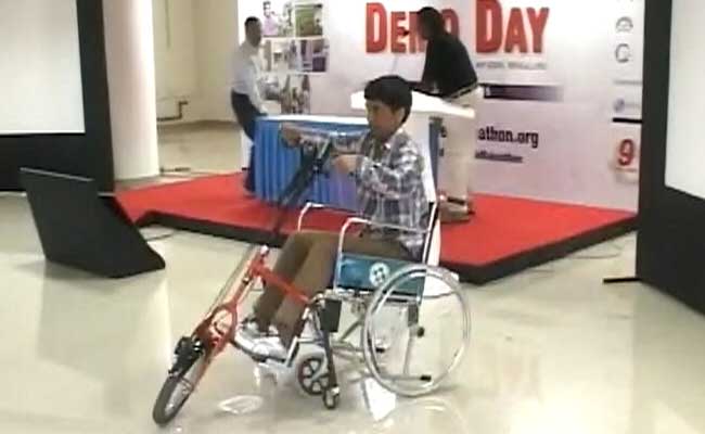 A cross between a wheelchair and a bicycle, velcro attachments for the hand, and a flexible, prosthetic foot good for uneven terrain were among the innovations that caught the most eye-balls at the first-ever "Enable Makeathon" by the Red Cross.