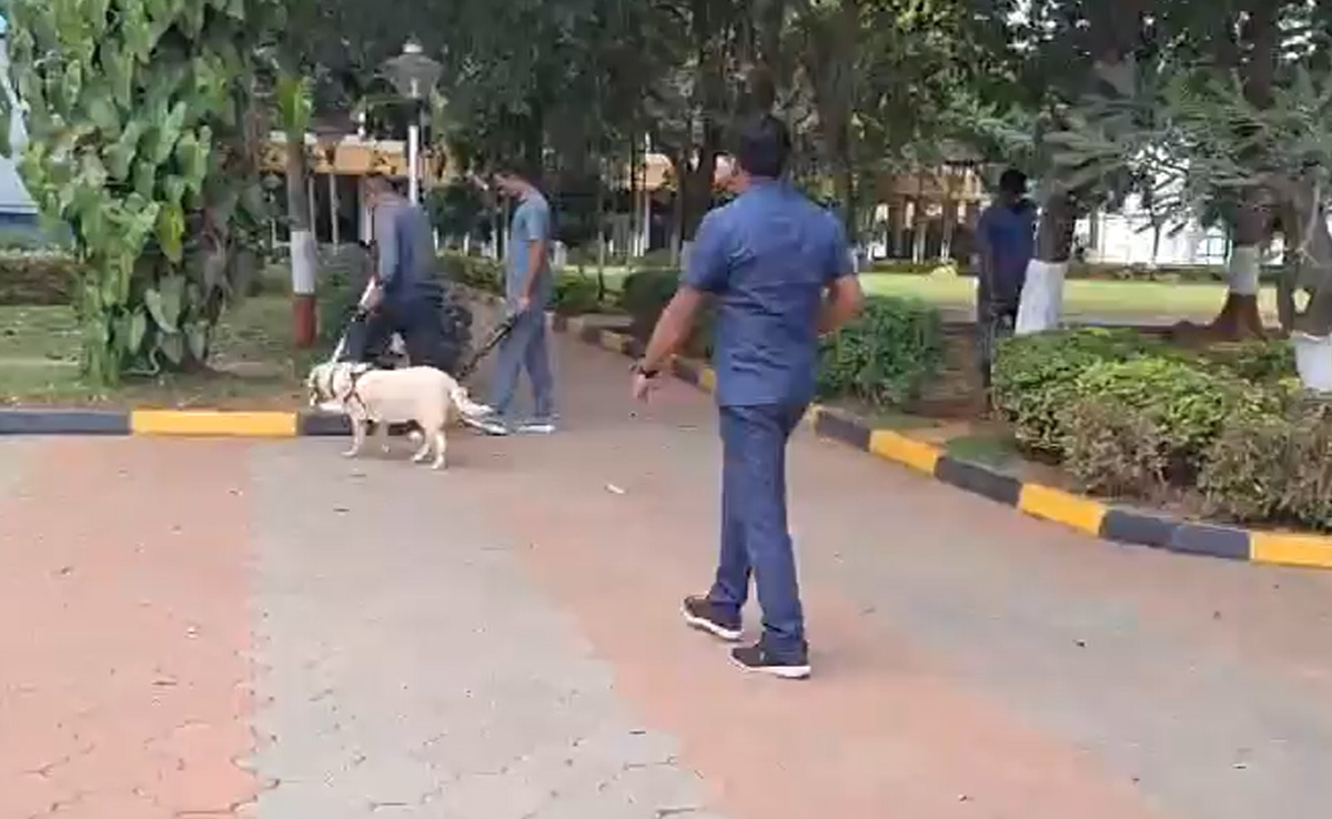 In a video posted by the news agency ANI, bomb disposal officers can be seen with a sniffer dog inspecting a school in Anekal.