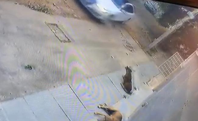 The CCTV footage, which has also been shared by some animal rights activists on social media, shows three stray dogs sleeping on the road. A white Audi then emerges in the frame.