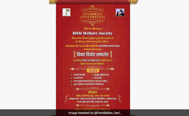 Wedding is an important milestone in life that people usually celebrate with their near and dear ones. But an invitation card about a group of men celebrating their marriage dissolution from courts after long-drawn divorce battles is gaining traction on social media. An NGO named Bhai Welfare Society decided to organise the event on September 18, saying that the initiative will "motivate" people that life doesn't end after divorce. However, some groups and individuals staged protests after which it was cancelled.
