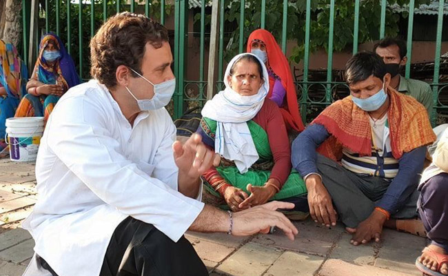 Congress leader Rahul Gandhi took to the streets of Delhi on Saturday evening to meet migrant workers camped out near Sukhdev Vihar flyover
