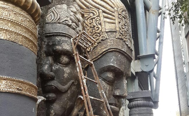 A replica of the Ajanta-Ellora caves being created at the Wankhede Stadium