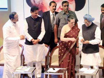 Prime Minister Manmohan Singh and Sonia Gandhi in Mumbai during the launch of the first all-women bank