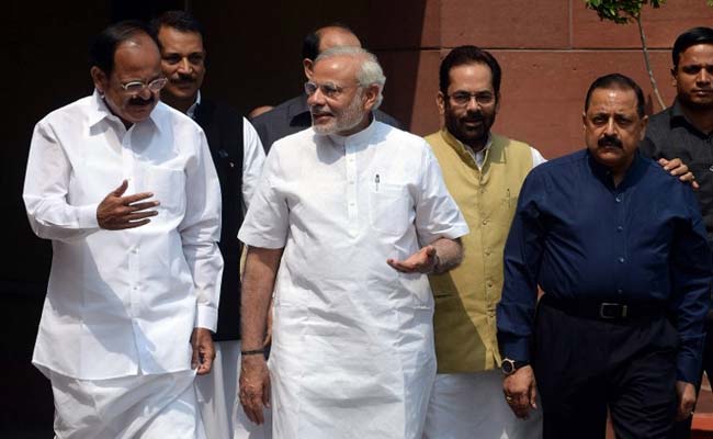Prime Minister Narendra Modi with Union Parliamentary Affairs Minister Venkaiah Naidu before the start of the Monsoon Session of Parliament on Tuesday. (Agence France-Presse)