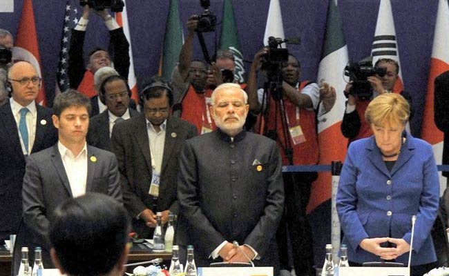 - The working sessions at the summit began with a minute of silence for those who were killed in Paris. "Standing in solidarity. The G20 working session begins with a moment's silence for victims of Paris Attacks," External Affairs Ministry spokesperson Vikas Swarup tweeted while posting pictures of the participating world leaders.