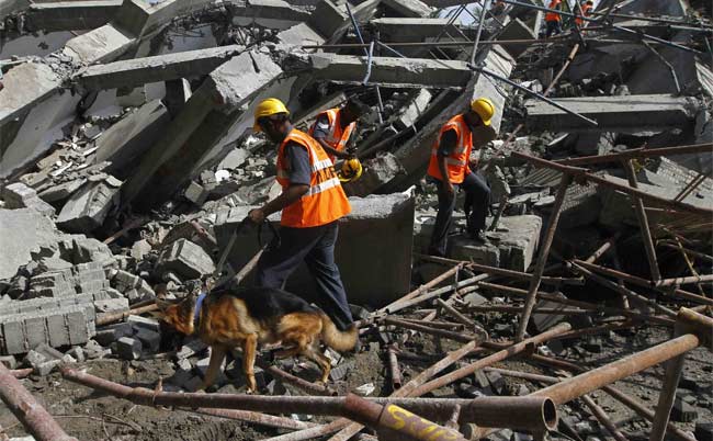Rescue workers conduct a search operation for survivors at the site of a collapsed building that was under construction on the outskirts of Chennai.