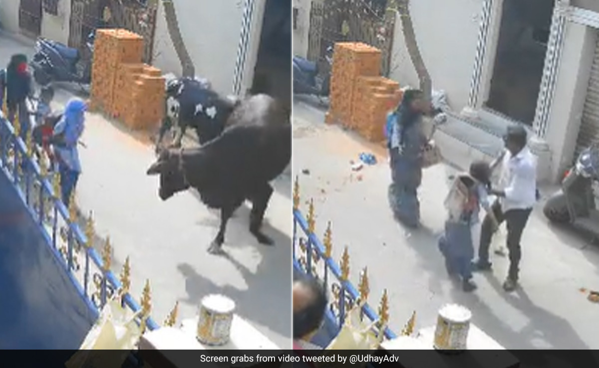 At one point, the cow appeared to be walking away, but it came back to attack the girl. The cow fled only when a local chased it with a stick. The girl was rescued and was seen struggling to stand up.