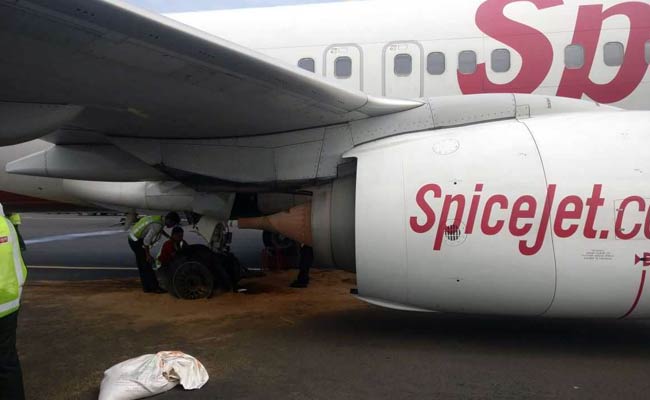 The wheels of the SpiceJet aircraft burst during take-off.