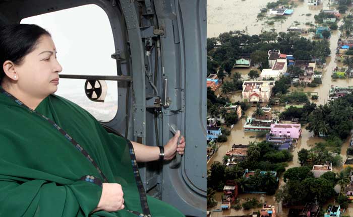 Tamil Nadu Chief Minister J Jayalalithaa conducts an aerial survey of rain hit areas of Chennai. (PTI Photo/DIPR)