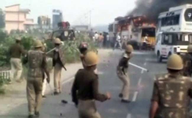 Police resorted to lathicharge as protesters pelted stones and torched vehicles.