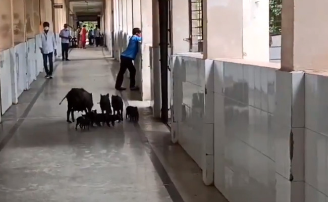 A herd of pigs can be seen roaming freely on the premises of a COVID-19 hospital in Karnataka, undeterred by the people present there. The grunting and squealing of the herd also does not bother the staff who continue to carry their duty, thus highlighting the complete negligence on hygiene by the hospital management.