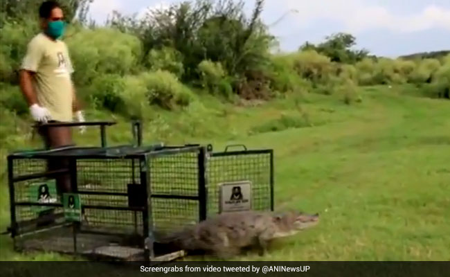 Visuals from the scene showed the crocodile scurrying into the river after it was released from the cage it was rescued in.