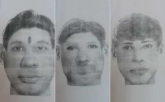 The sketches of the three men released by the police. The man who took Swapnali Lad to hospital alleges he was threatened by them.