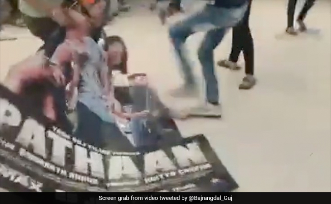 Members of the right-wing outfits Vishwa Hindu Parishad and Bajrang Dal on Wednesday forcibly entered a mall in Ahmedabad and tore up posters and other publicity material of the upcoming film "Pathaan" starring Shah Rukh Khan and Deepika Padukone.