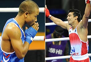 Asian champion Suranjoy Singh (52kg) just had to hop into the ring to fetch a gold, while Manoj Kumar (64kg) and Paramjeet Samota (+91kg) notched up the most memorable triumphs of their careers as India, having already won four bronze through Amandeep Singh (49kg), Jai Bhagwan (60kg), Dilbag Singh (69kg) and Vijender Singh (75kg), completed their best ever medal haul in the Games in front of raucuous home fans.