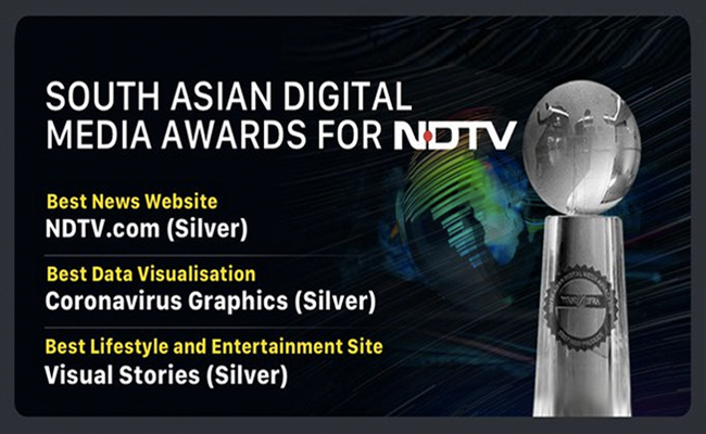 NDTV has won big in the South Asian Digital Media awards 2020, once again proving that it is the leader in quality journalism and news coverage. Our site ndtv.com has won the silver for Best News Website.