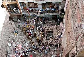 The three-storey residential building collapsed in a heavily congested area near the Azad Market at around 7.30 am.