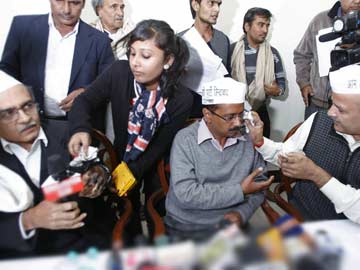 Arvind Kejriwal at a press conference in New Delhi on November 18 where a heckler threw ink at him.