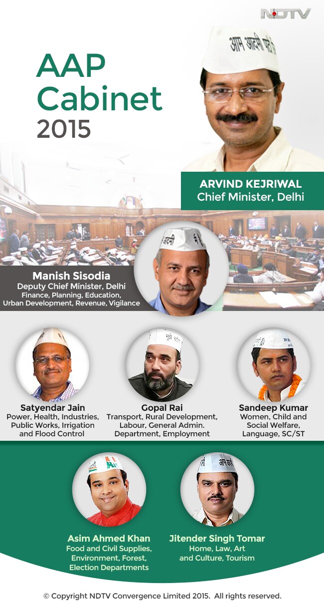 The ministries of Home, Law and Art and Culture will be with Jitender Tomar. AAP's previous law minister, the controversial Somnath Bharti, has been dropped this time.