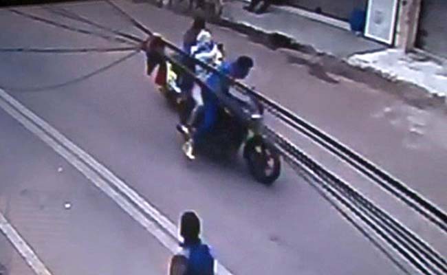 Two men on a motorcycle threw acid on a woman doctor today in West Delhi's Rajouri Garden. The attack has been caught on CCTV cameras installed in the market.
