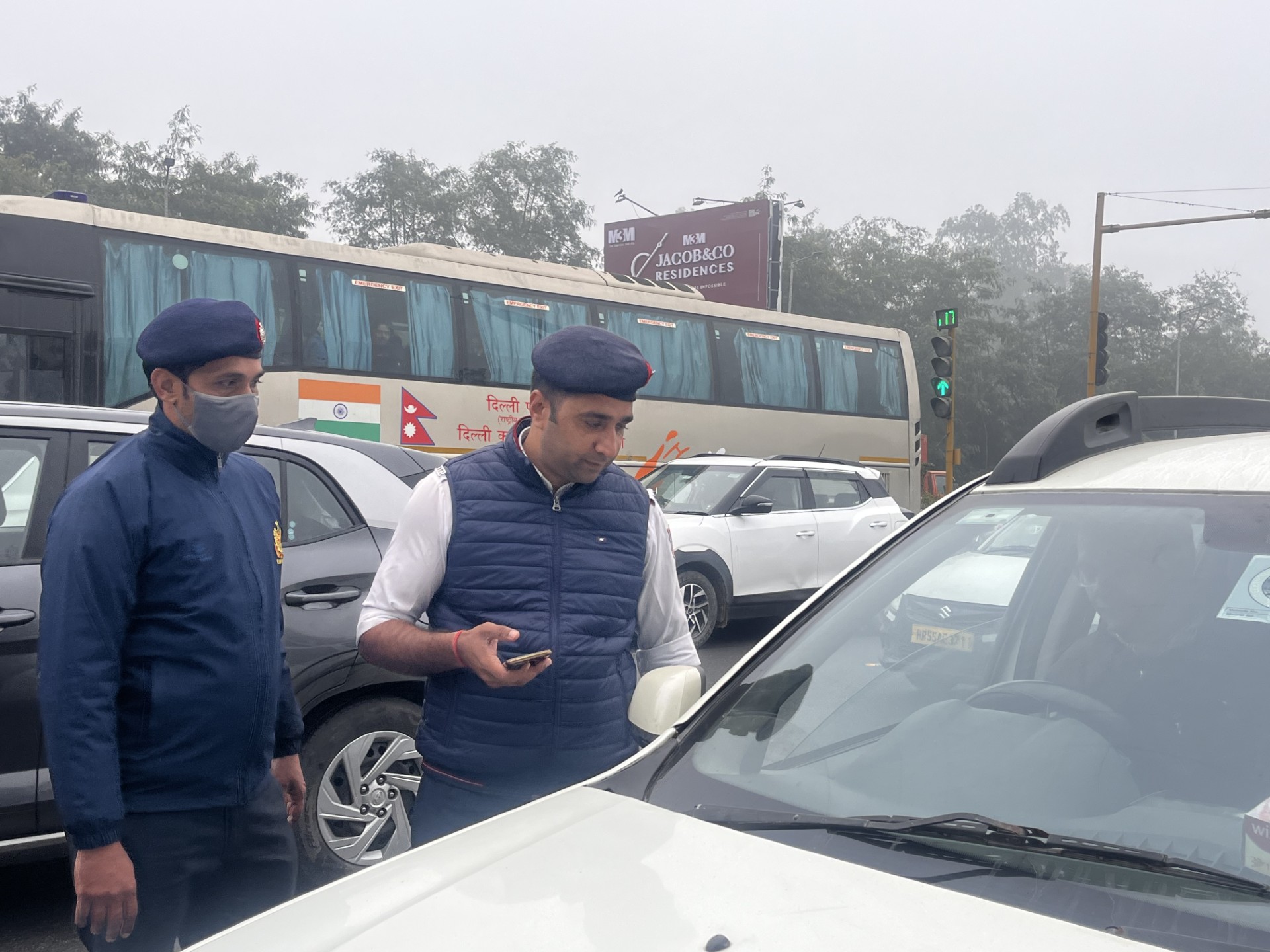 The Delhi Traffic Police on Thursday intensified enforcement across the city as a ban on the entry of non-Delhi private vehicles below BS-VI standards and the 'No PUC, No Fuel' rule came into force.