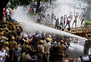 The road which leads to Talkatora stadium had been barricaded with around 200 policemen deployed in riot gear. The police used water cannons on the protestors after they tried to break the barricades.