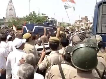 The Congress leaders were accompanied by around 150 supporters who tried to storm into the railway station, when they were stopped by the police. Water cannons were also used to control the crowd.