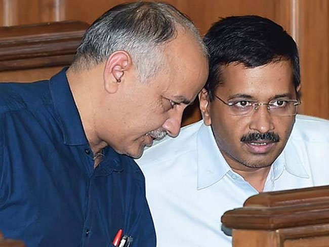 File Photo: Delhi Chief Minister Arvind Kejriwal with his deputy Manish Sisodia (Press Trust of India)