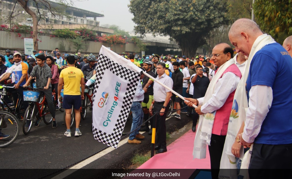 Taking to Twitter, the Delhi L-G said, "Flagged off the 'Cycling4LiFE' Cyclothon along with diplomatic representatives of Slovenia, Netherlands, European Union (EU), Italy & Germany in Chanakyapuri, today morning. In congruence with the overarching G20 theme of Lifestyle for Environment (LiFE), the Cyclothon saw varied participants."