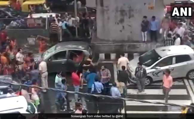 Saffron-robed Kanwar pilgrims are seen wrecking a car and toppling it on a busy street in Delhi in a video taken on Wednesday and shared online. Around a dozen Kanwarias are seen in the video smashing the windows of the car with sticks and then tipping it over as policemen and spectators watch without stopping them. The car had allegedly brushed past them on a road in Moti Nagar, which led to the attack, reports news agency ANI.