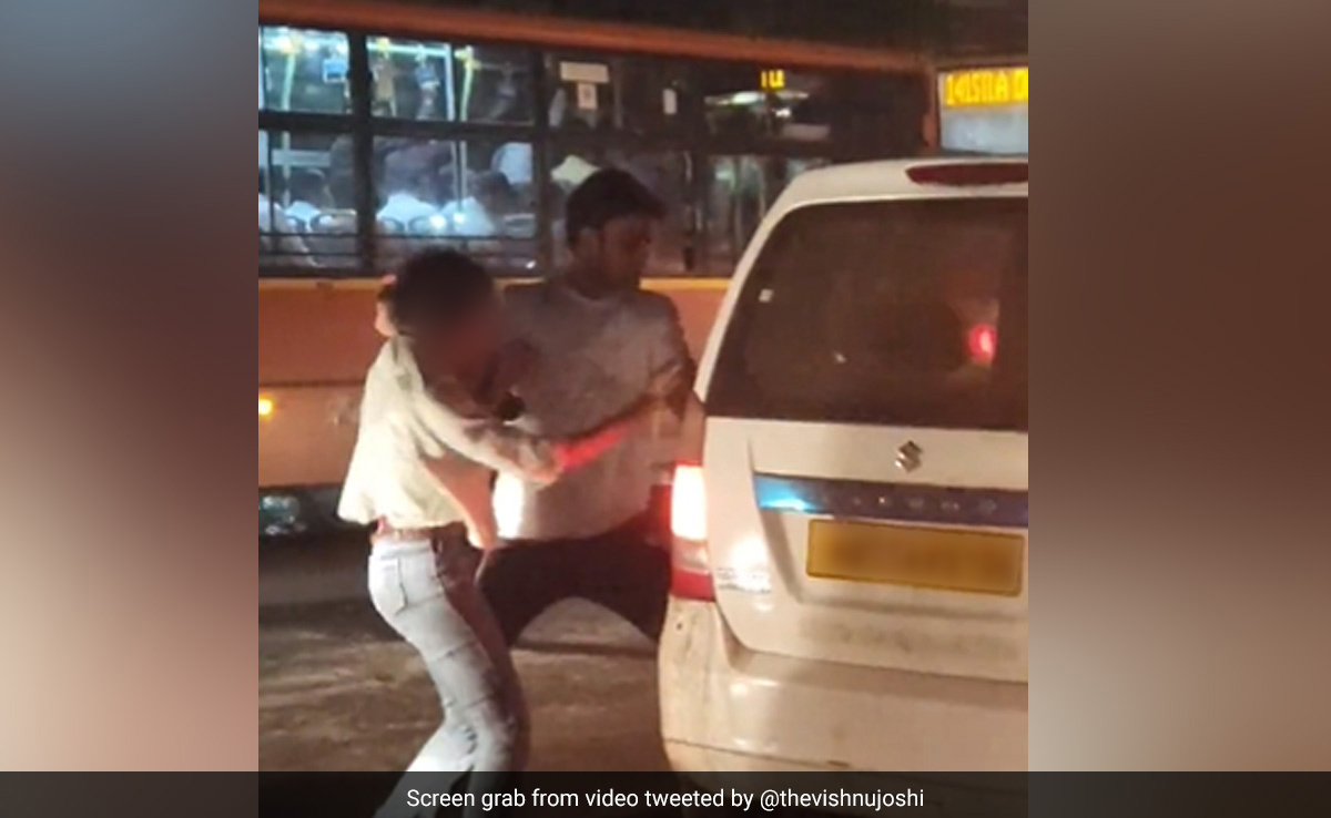 The man in the video was seen pushing the woman forcibly into a cab and then punching her repeatedly. Another man looks on but does not intervene. Once the woman is inside the cab, both men get in and the car drives away. Despite heavy traffic, no one intervenes.