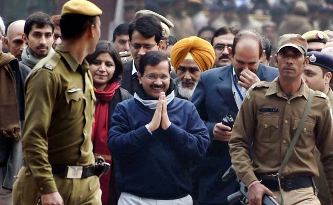 AAP chief Arvind Kejriwal after filing his nomination for Delhi assembly elections. (PTI Photo)