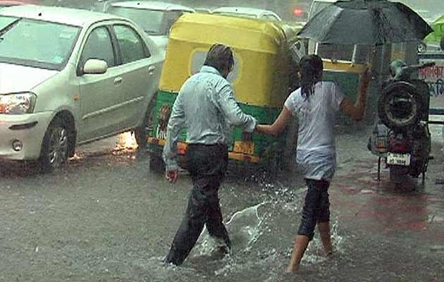 As rains continued to drench Delhi, commuters had a hard time in most parts of the city as visibility also dropped slightly. Pedestrians were seen wading through streets flooded by overflowing drains.