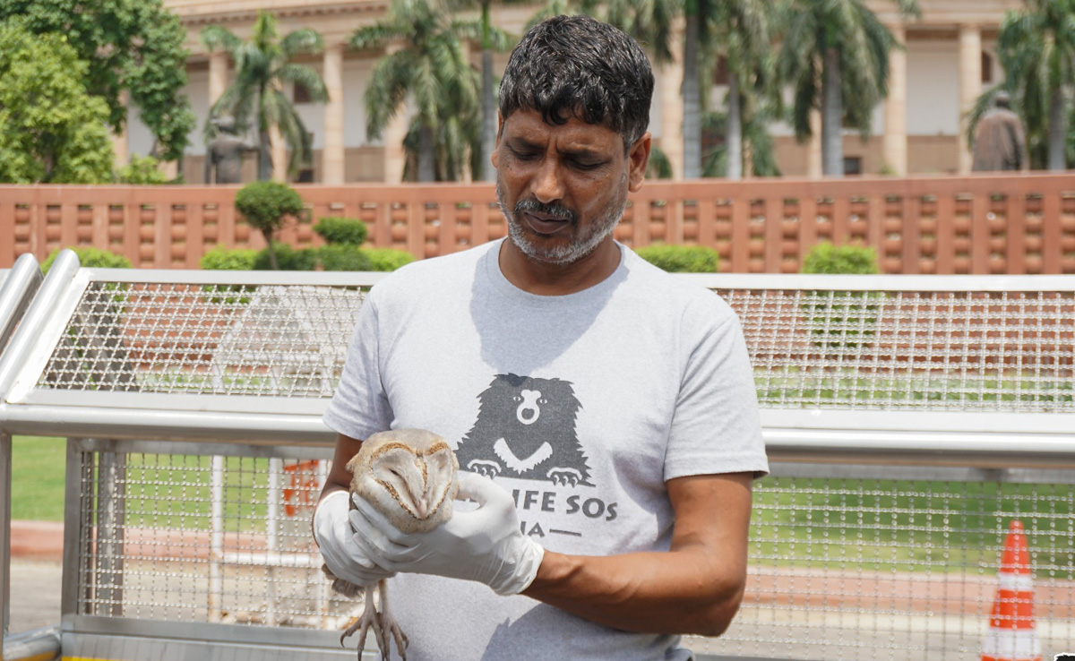 Parliament staff members spotted the barn owl on the lawn inside parliament premises. It had fallen from a tree and injured its right wing.
