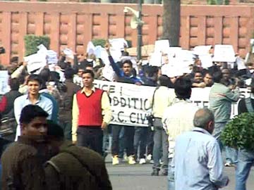 A large group of civil services aspirants protested outside Parliament today to demand an increase in the number of attempts for the exam.