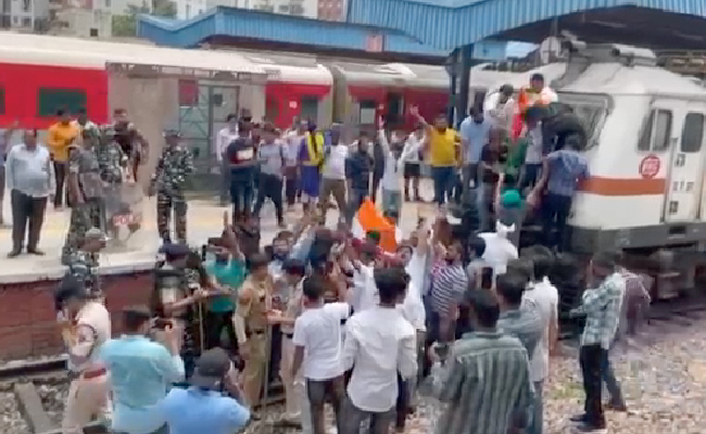 Indian Youth Congress workers on Monday stopped a train at the Shivaji Bridge railway station near Connaught Place in the national capital to push for their demand for a rollback of the 'Agnipath' defence recruitment scheme.