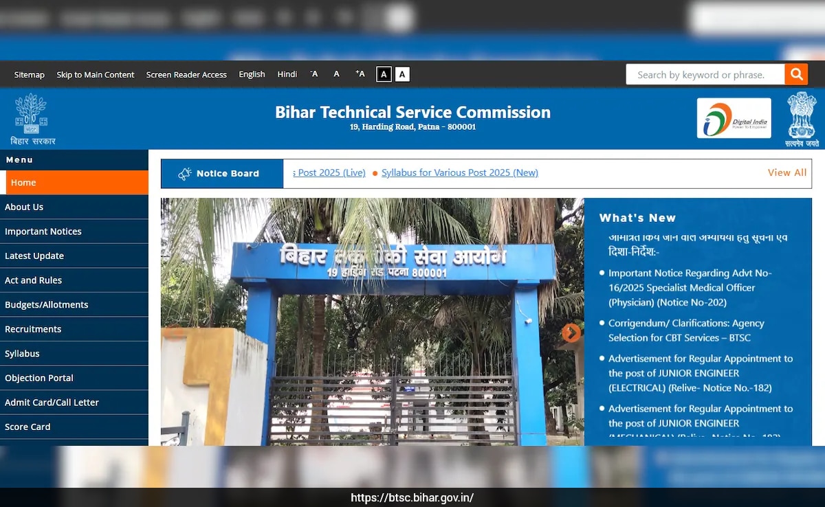 The Bihar Technical Service Commission has extended the date for the registration of Junior Engineer recruitment 2026. Earlier the deadline was January 12, but it has been extended till January 30. Candidates can visit the official website to apply.