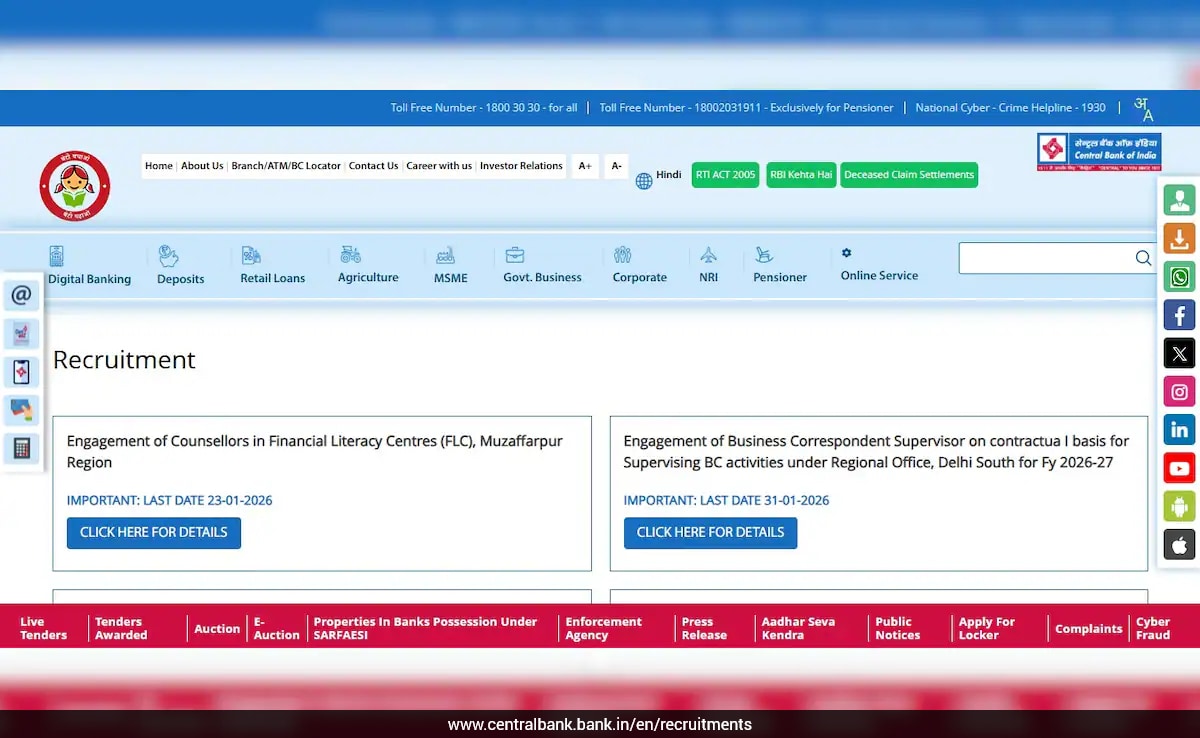 Central Bank Of India Recruitment Opens For Officer Positions In 2026