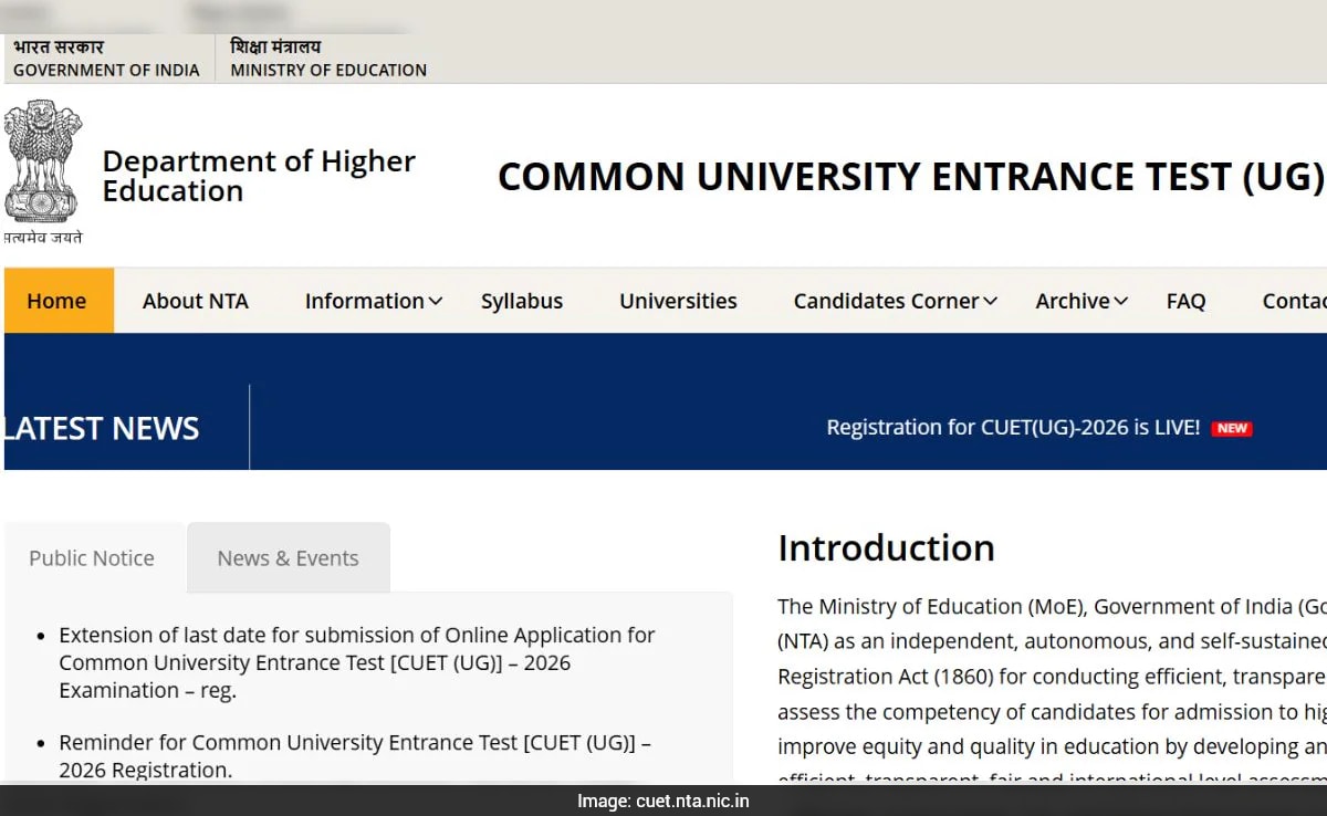 CUET UG 2026 Registration: The extension also covers candidates who were unable to complete fee payment by January 31, 2026 (up to 11:50 pm) due to unsuccessful transactions.