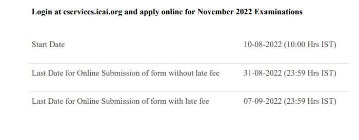 CA Inter, Final November 2022 Exam: The Institute of Chartered Accountants of India, ICAI has commenced the application process for the CA November exam 2022. Candidates can apply for the CA Final November exam on the official website- icaiexam.icai.org. The last date to apply for CA November exam is August 31, while with late fee till September 7.