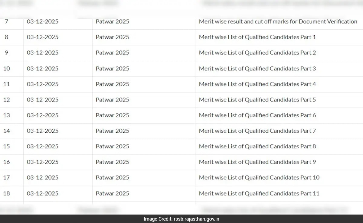RSSB Rajasthan Patwari Result 2025: The Rajasthan Staff Selection Board (RSSB) has released the Patwari examination 2025 roll number-wise result and cut-off. The board has released 12 merit-wise list of qualified candiates and a separate cut-off list. Candidates who appeared for the examination on August 17, 2025 can check and download the result on the official website of the board - rssb.rajasthan.gov.in.