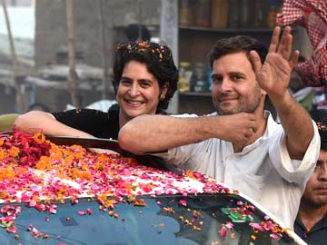 Rahul Gandhi with sister Priyanka Vadra during road show at Jayas, Amethi on Sunday