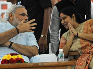 File photo of BJP's Prime Ministerial Candidate Narendra Modi and senior party leader Sushma Swaraj