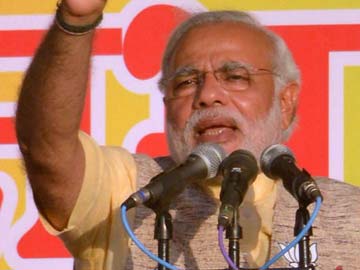 BJP leader Narendra Modi during an election rally at Satona in Madhya Pradesh